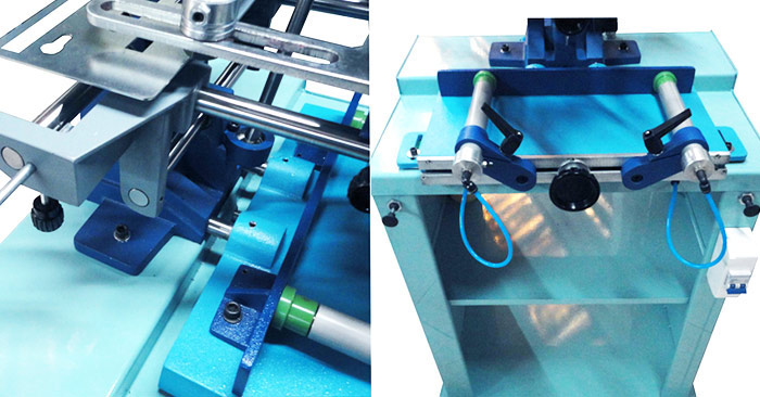 Cuenta con dos morsas con pistones neumáticos para el apriete del perfil.